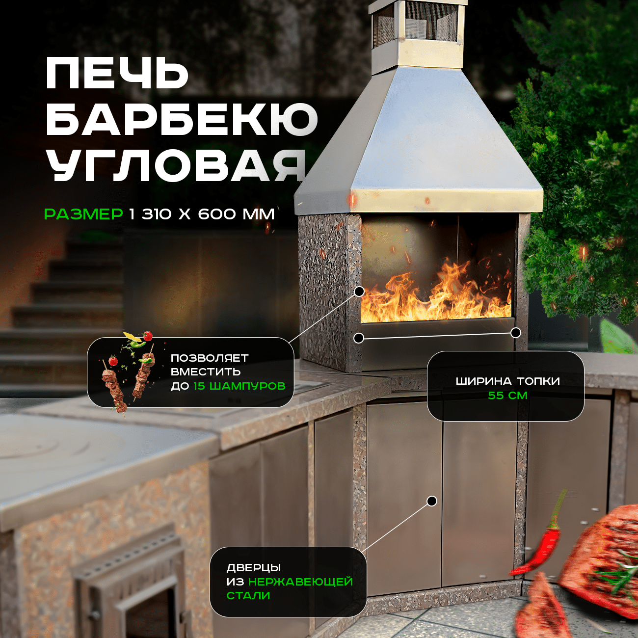 Угловой барбекю комплекс сочетает в себе превосходную прочность гранита и нержавеющую сталь AISI 304, гарантируя стиль, долговечность и функциональность.